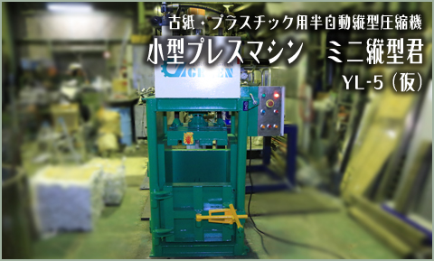 >古紙・プラスチック用半自動縦型圧縮機 小型プレスマシン ミニ縦型君(YL-5 (仮)) その1 販売ページ