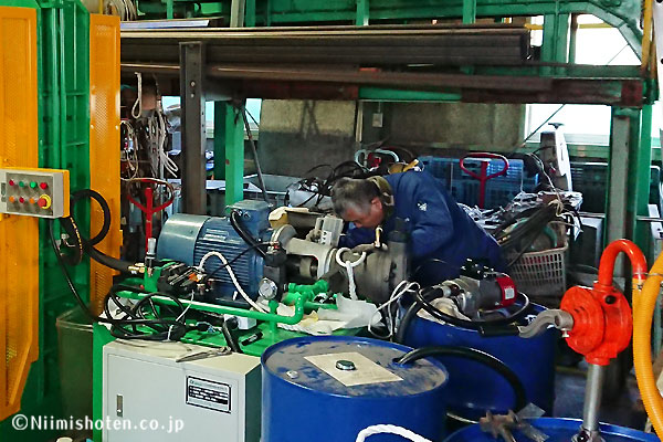 ちなみに、写真は作動油の注入をおこなっている場面です!!