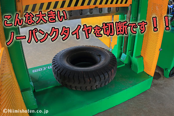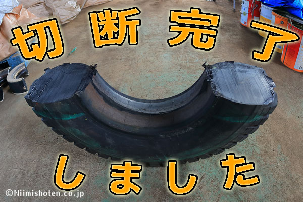 と言う事で、オマケに切断テストをした一部の写真を載せておきます。非常に大きいサイズのノーパンクタイヤです!!